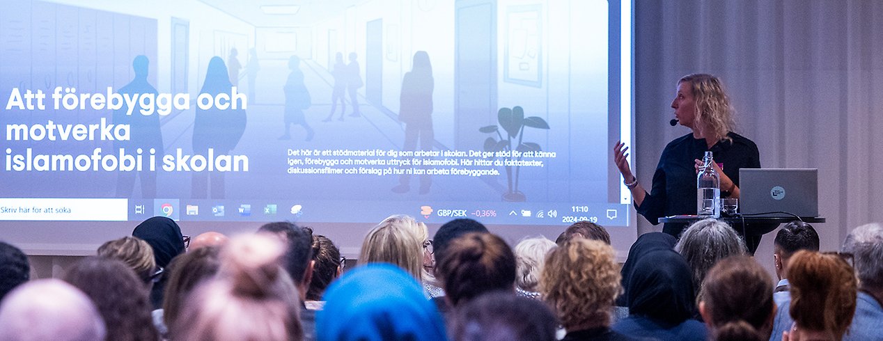 Momodou Malcolm Jallow, tidigare General rapporteur för Europarådet, talade om den växande antimuslimska rasismen i Europa, medan Madelene Persson och Camilla Sjöström från Forum för levande historia presenterade utbildningsmaterial för att motverka islamofobi i skolan. Said Mekahal, sektionschef för Allaktivitetshusen Apelgården, delade sina erfarenheter av att bemöta islamofobi och hur personal kan stödja barn och unga som utsätts för detta.