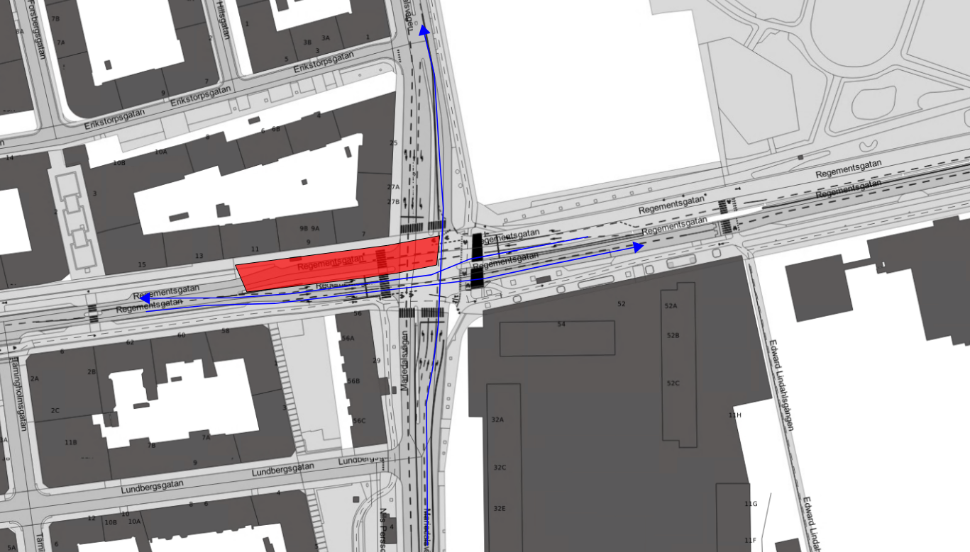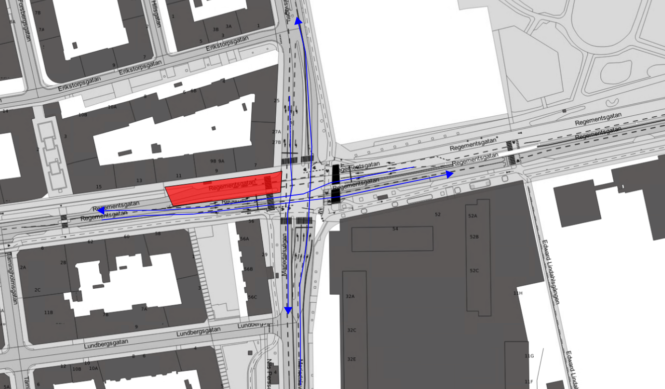 Avstängning och trafikflöde på Regementsgatan 4/5–12/6