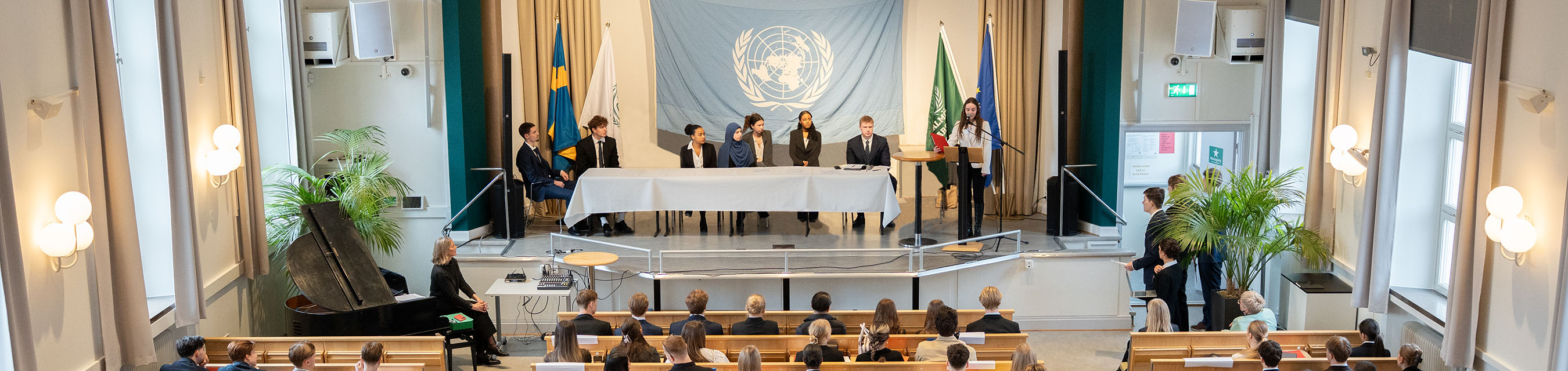 Vi bygger konkret förståelse för lokala, nationella och internationella frågor som mänskliga rättigheter, globalisering, social utveckling och miljöfrågor. Detta sker bland annat genom FN-rollspel, studiebesök i riksdagen och intressanta föreläsare.