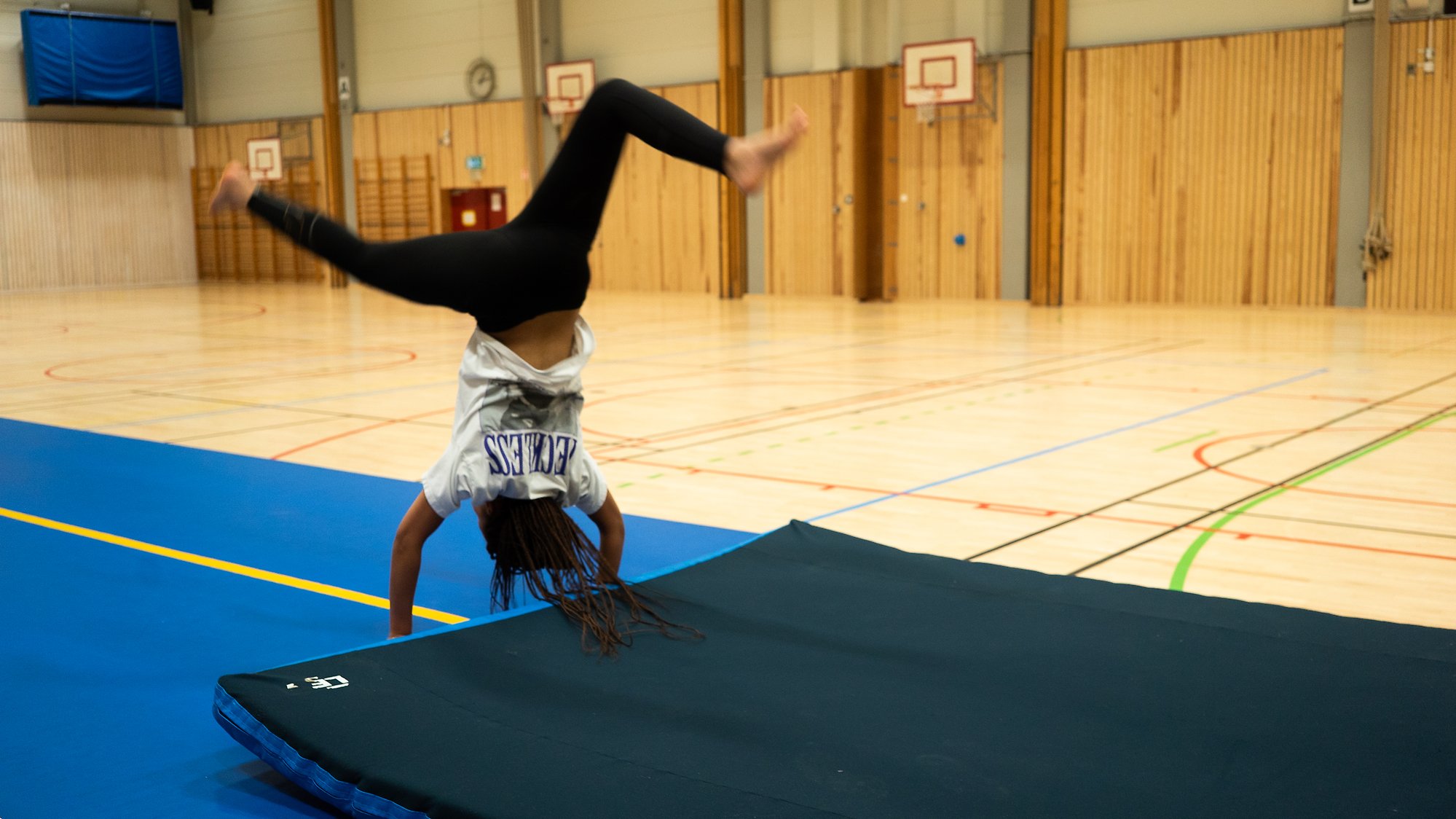 Aktiviteten är i Oxievångsskolans gymnastiksal (tidigare kallad Blankebäcksskolans gymnastiksal).