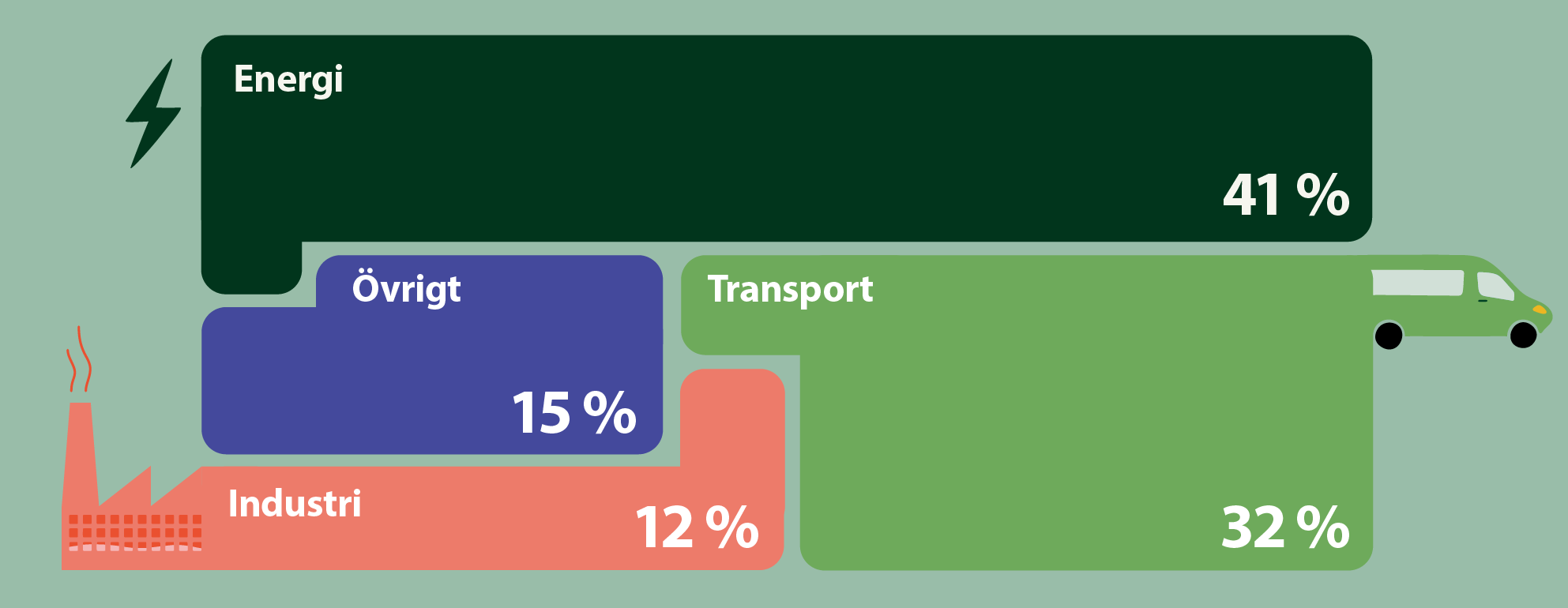 De största utsläppen inom Malmös geografiska gräns kommer idag från tre områden som gemensamt står för 85 procent av utsläppen: