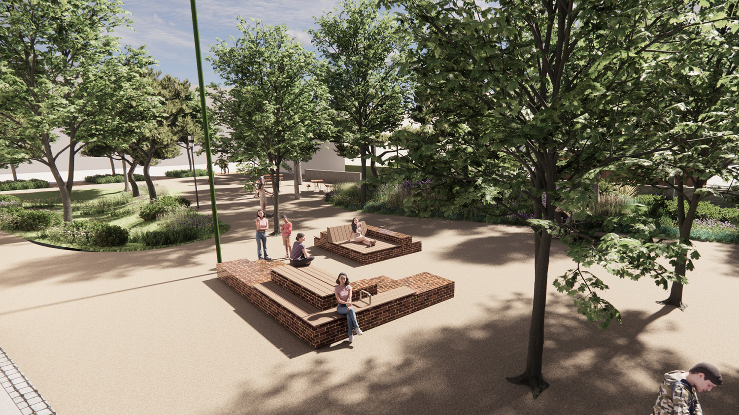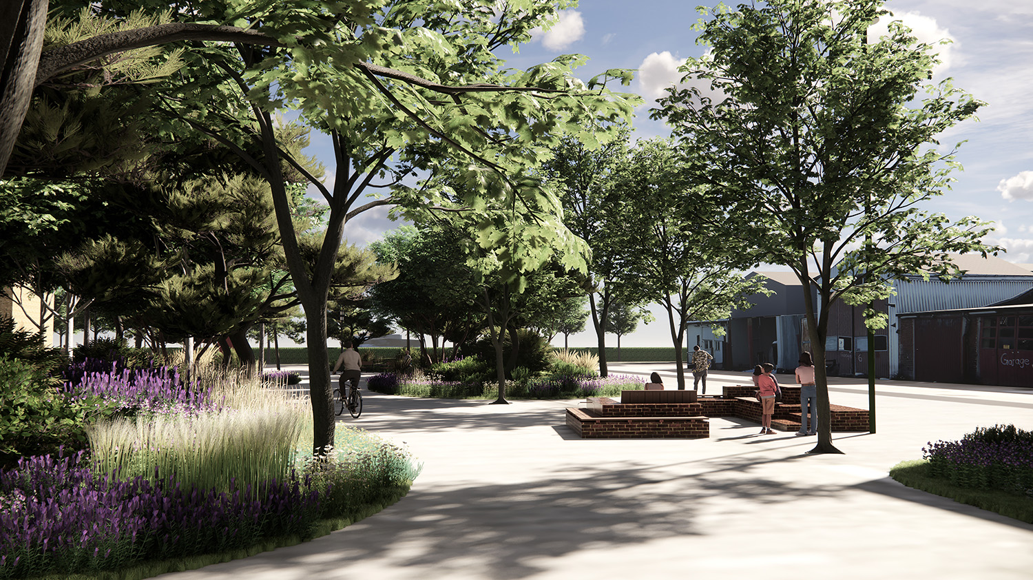Vi bygger en ny kvarterspark med inbjudande sitt- och hängytor. Parken får grönska i växtbäddar och effektbelysning för att öka känslan av trygghet. Den beräknas vara klar hösten 2026.