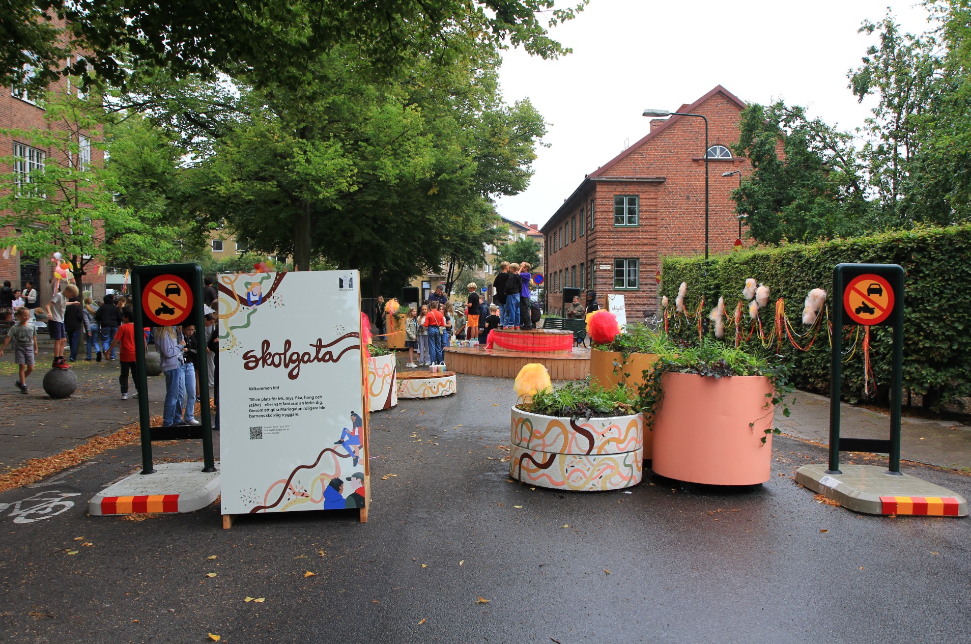 En del av Mariagatan gjordes därför om till en yta för vistelse med möblering, sittytor och planteringar under augusti 2024. Tanken var att koppla ihop Sorgenfriskolans skolgård med "Päronparken" (Mäster Eriksplan), där många barn i dag vistas både på och utanför skoltid. Tanken var även att skapa en plats för eleverna eller andra i området att hänga, leka eller bara vara på.