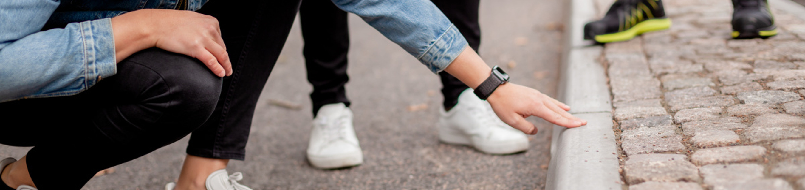Vid utformning av gator med gångbanor ska kantsten med visning alltid användas.