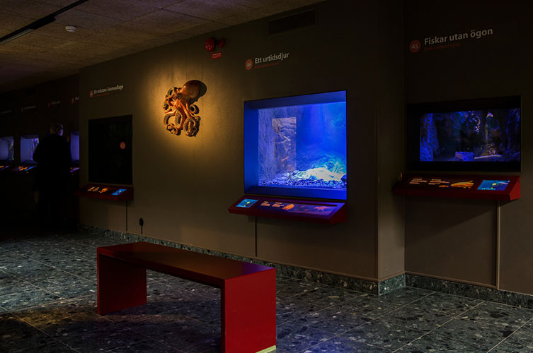 Akvariet hittar du på Slottet. Gå genom museibutiken rakt fram och ner en halvtrappa. Hiss finns.