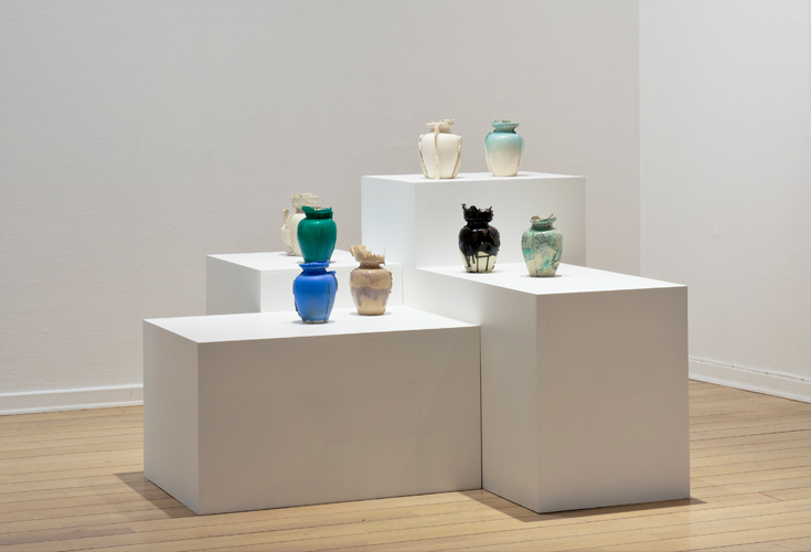 I utställningen Shapeshiftersmöts besökare av verk som reflekterar över framtiden och de förändringar vi går till mötes. Av konstnären Elin Alvemark visas ett antal keramiska urnor med olika uttryck och karaktär. I ett samtal med curatorn Anna Johansson berättar Alvemark lite mer om tankarna bakom verken.