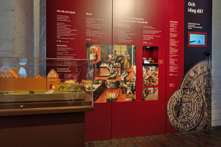 Dåtida mynt tillverkades i första hand av silver. Utställningen berättar om silverbrytning, silvrets väg från gruva till mynttillverkningsort och om människorna som var delaktiga i processen att förvandla silver till färdiga mynt.