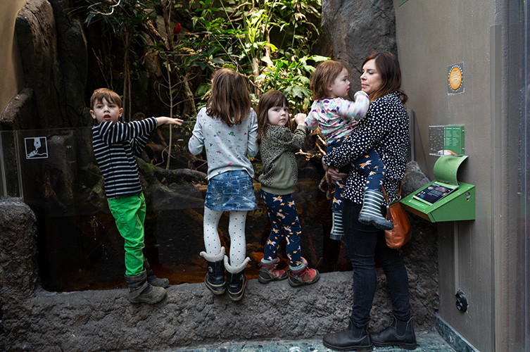 I vår egen regnskog flyger fåglar i taket och har du tur får du syn på några av våra basilisködlor och sköldpaddor som lever här. I mangroveträsket simmar sprutfiskar som kan prickskjuta insekter som flyger ovanför vattenytan. Här finns också slamkryparen – en fisk som lever på land!