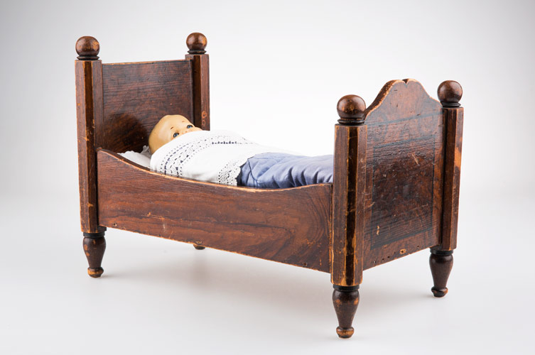 Några av dockorna tillhör dockhus med möblemang och husgeråd från 1800- och 1900-talen med inventarier som silverbestick, golvur, solfjädrar, öronlappsfåtöljer, glas och koppar.