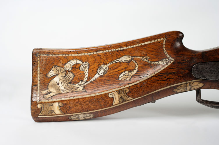 Dessa äldre eldvapen och armborst är intressanta ur en teknisk synvinkel men dekoren med inläggningar av elfenben och etsade och graverade orneringar gör att de även har ett konstnärligt värde.