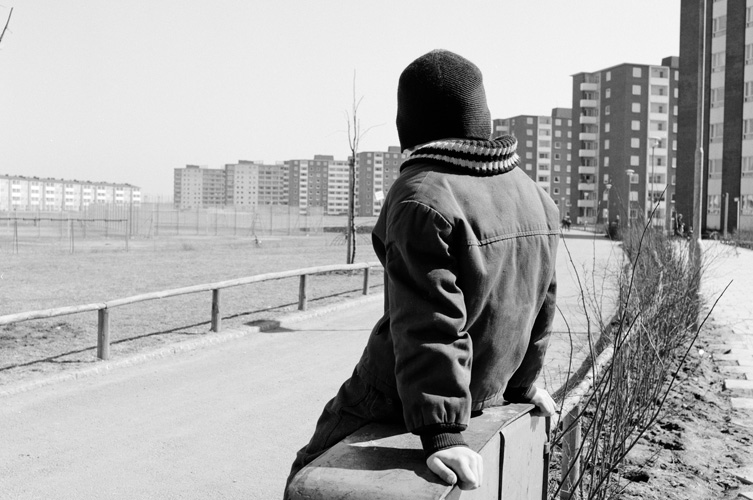 Det är lätt att missa fotografens särpräglade kontakt med de porträtterade på de här bilderna, eftersom det är arkitekturen och bostadskomplexen som vi först reagerar på. Men titta en gång till, på hur Oddner fångar människorna, sätter dem i centrum, titta på perspektiven, på hur han hukat eller gått ner på knä för att möta barnen på deras nivå. Det är den ensamma kvinnan som går med ryggen mot kameran som han får oss att identifiera oss med, eller med pojken på elskåpet, mammorna med barnvagnar.