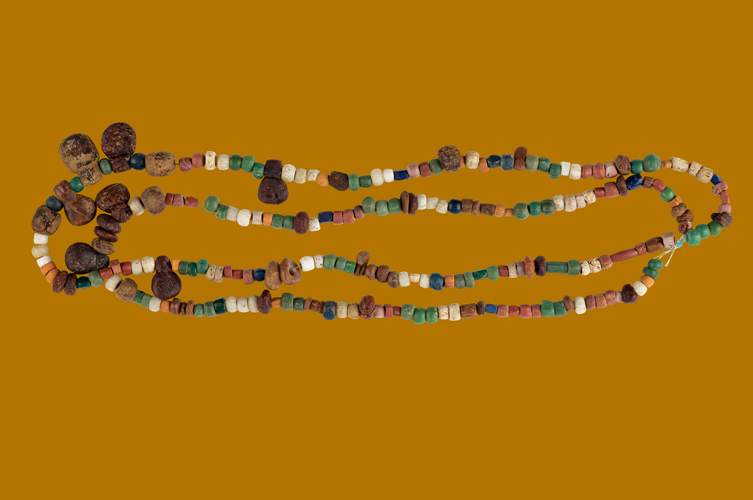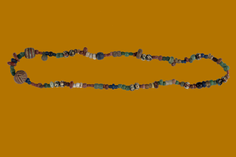 Pärlhalsband och pärlor från forntiden som finns i museets samlingar.