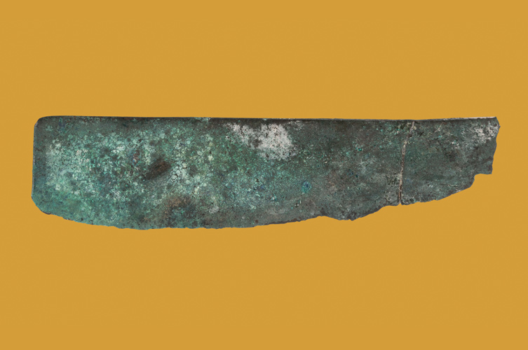 föreställ dig att de är riktigt blanka och gyllengula. Det var så de såg ut när de var nya. Den gyllene färgen var inte bara populär på smycken och andra statusföremål. De första tygerna som färgades kan ha varit gula. Den grönbruna färgen beror på att metallen har ärgat, alltså påverkats av luft och vatten under årens lopp.