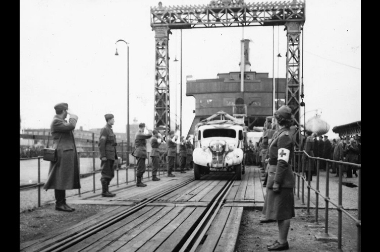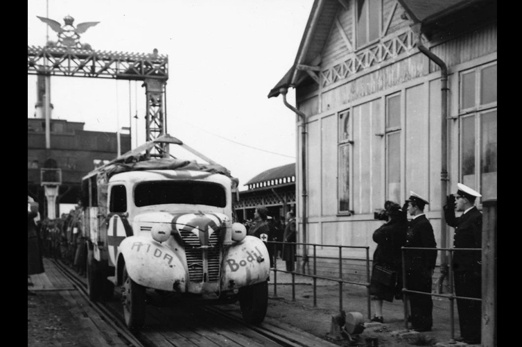 Pastor Sven Hellqvist och major Sven Frykman höll tal på kajen och man placerade kistan i ångfärjestationens väntsal. Där talade bl.a. Dr Otto Löfberg, ordförande för Röda Korset i Malmöhus läns. Han framförde där en sista hälsning, lade en krans på kistan och läste upp det telegram som prins Carl, Röda Korsets ordförande, hade skickat. Kransar lades också av överste af Sillén och kapten Friberg.