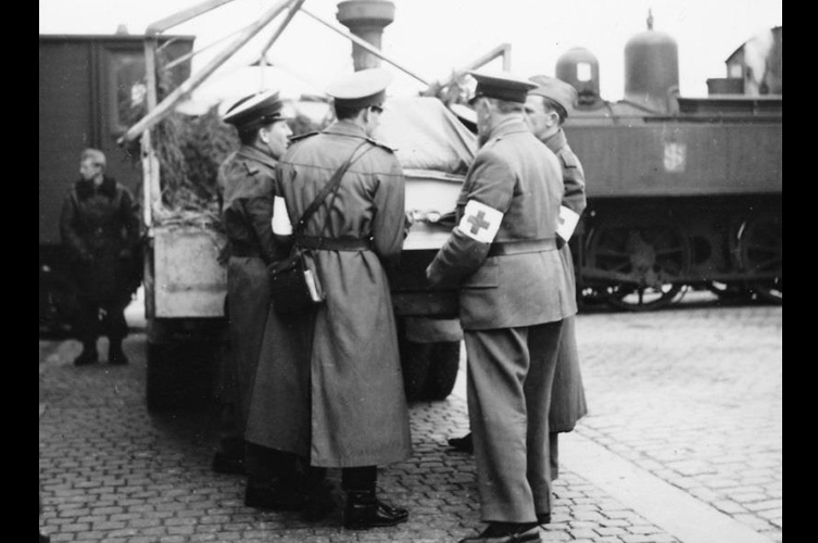 ”[…] Kolonnen hade gjort halt, då allierade jaktplan närmat sig. All personal hade stigit ut ur fordonen och sökt skydd i närheten av vägen. Jaktplanen hade kretsat över vägen utan att skjuta, och i förhoppning att de känt igen rödakorsbilarna hade man åter stigit i fordonen. Just som allt var klart för fortsatt färd hade flygarna gått till anfall.”