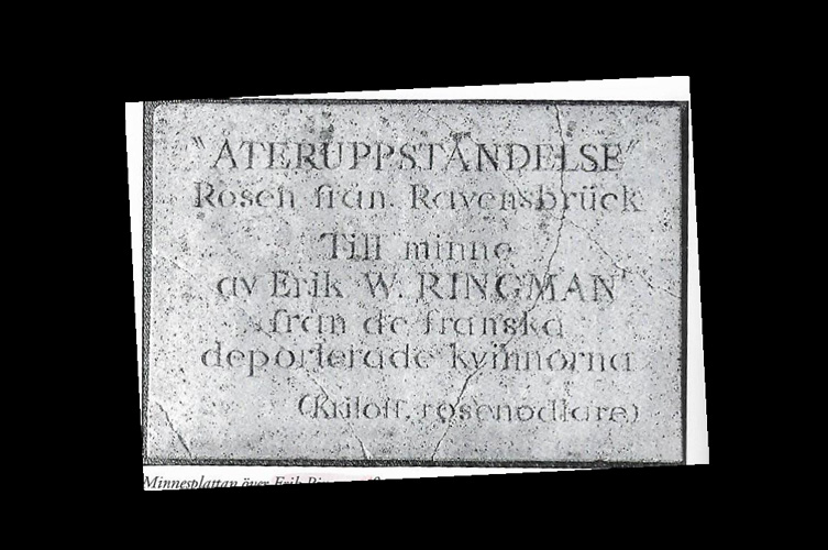 På kyrkogården Père-Lachaise i Paris finns Marcelle Dudach-Rosets Rosen från Ravensbrück inristad på en gravsten. Som jag har förstått det av det dokument jag fick av Astrid Allard ska de två första raderna på Ringmans minnessten syfta på denna text som på svenska lyder såhär: