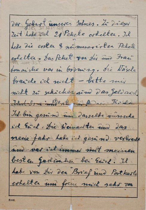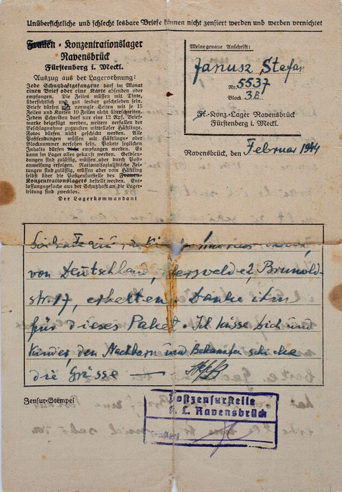 Bilderna föreställer brev skrivna av Stefan Janusz från lägren.
