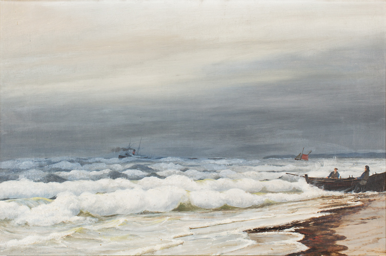 Marint måleri med stormmotiv från Malmö Museers samlingar.