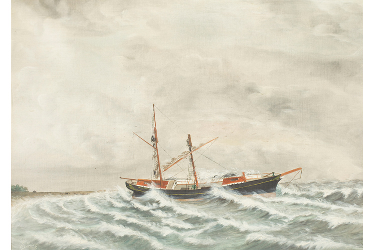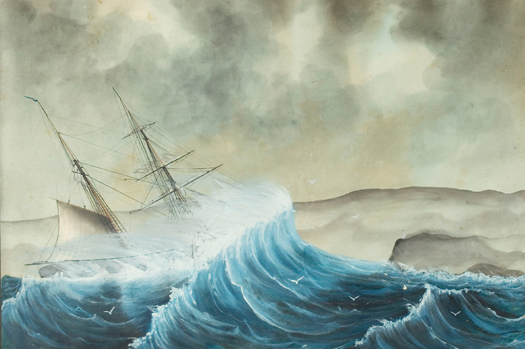 Motiv: Fartyget Northfleets förlisning 1873. - Olja på duk, okänd konstnär, odaterad.