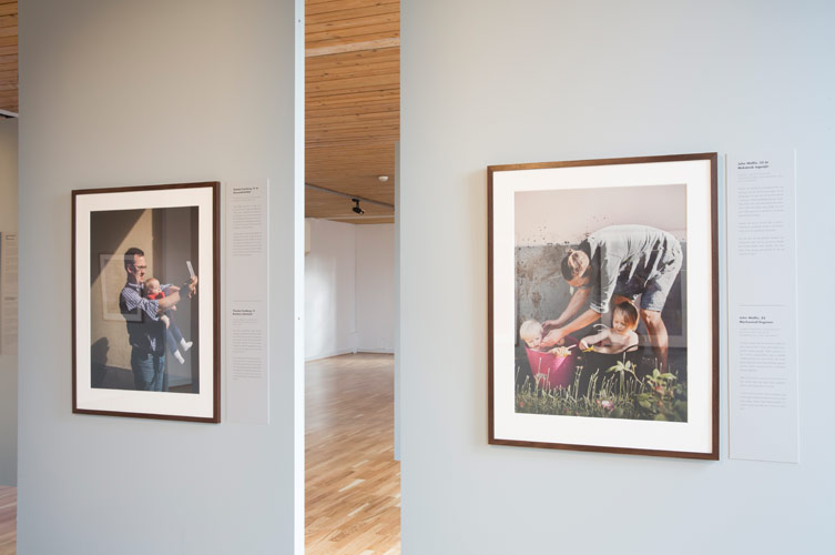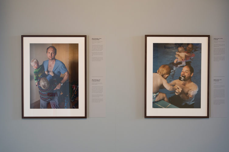 På utställningen skildras de porträtterade papporna tillsammans med sina reflektioner och erfarenheter om föräldraskapet och av att vara pappa.