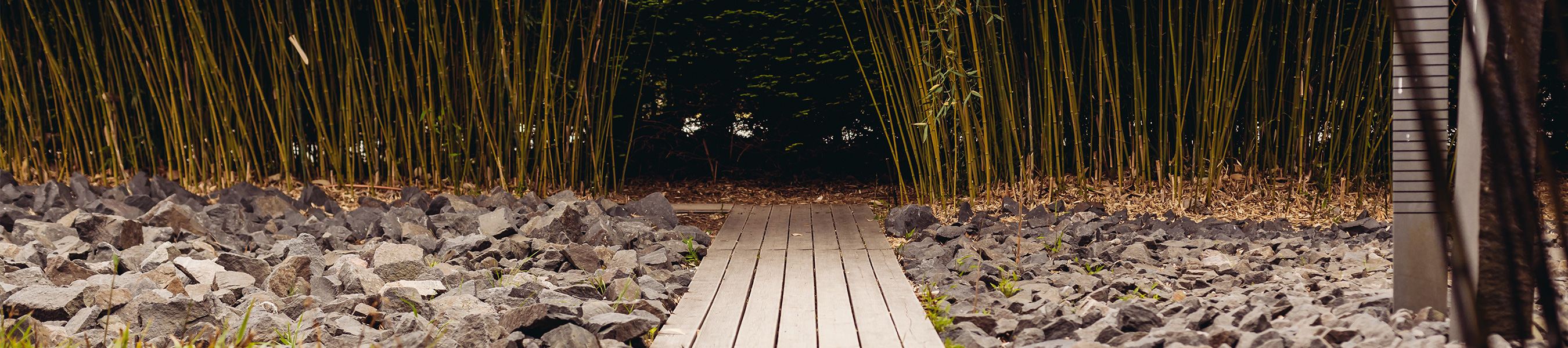 Inspirerad av den moderna japanska trädgårdskonsten och zenbuddismen.