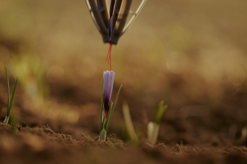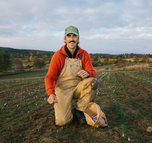 Karl Berglund von Storp bei der Saffran-Ernte. „Unser übermäßiges Vertrauen auf Monokulturen ist äußerst kurzsichtig.“